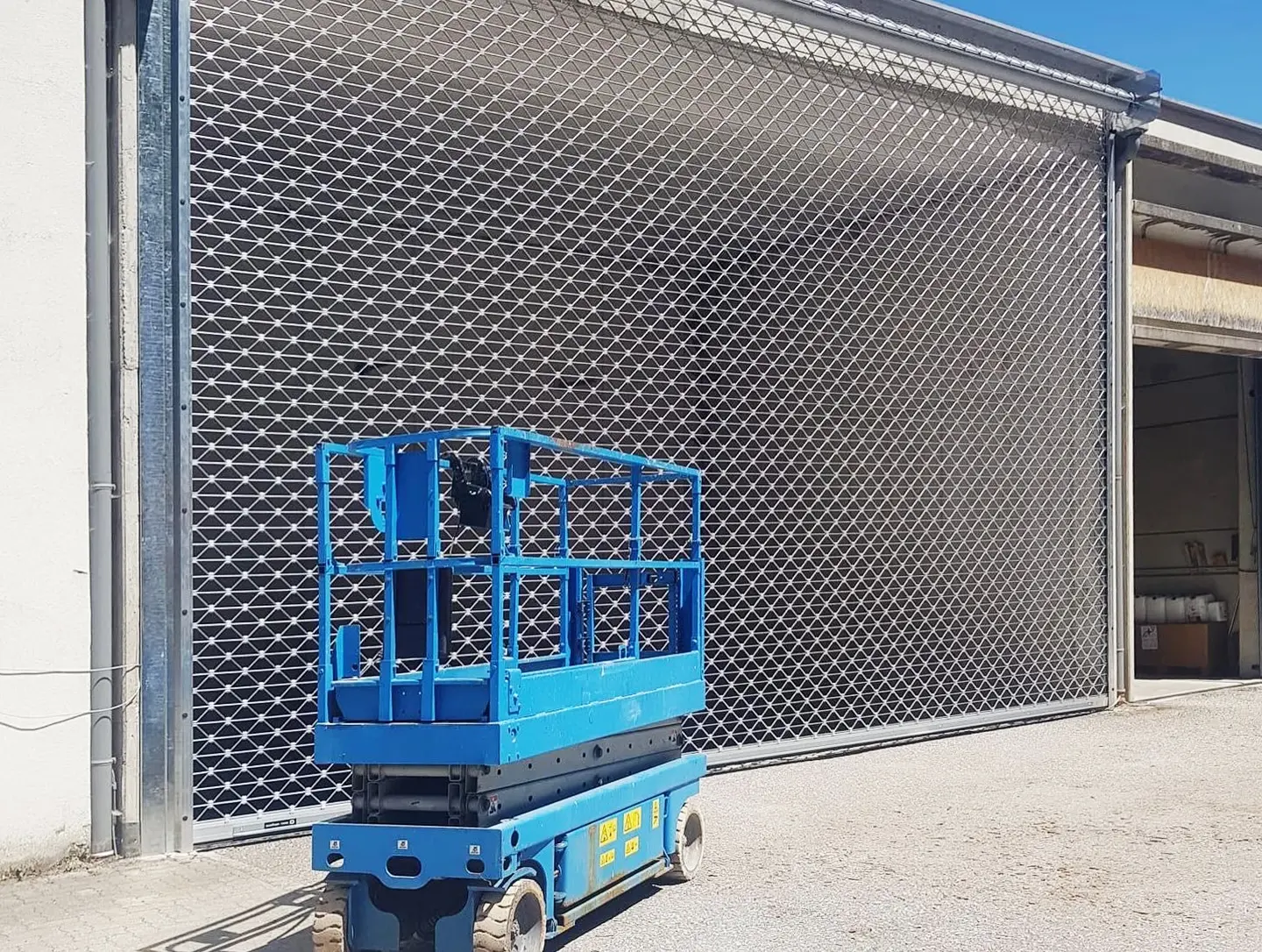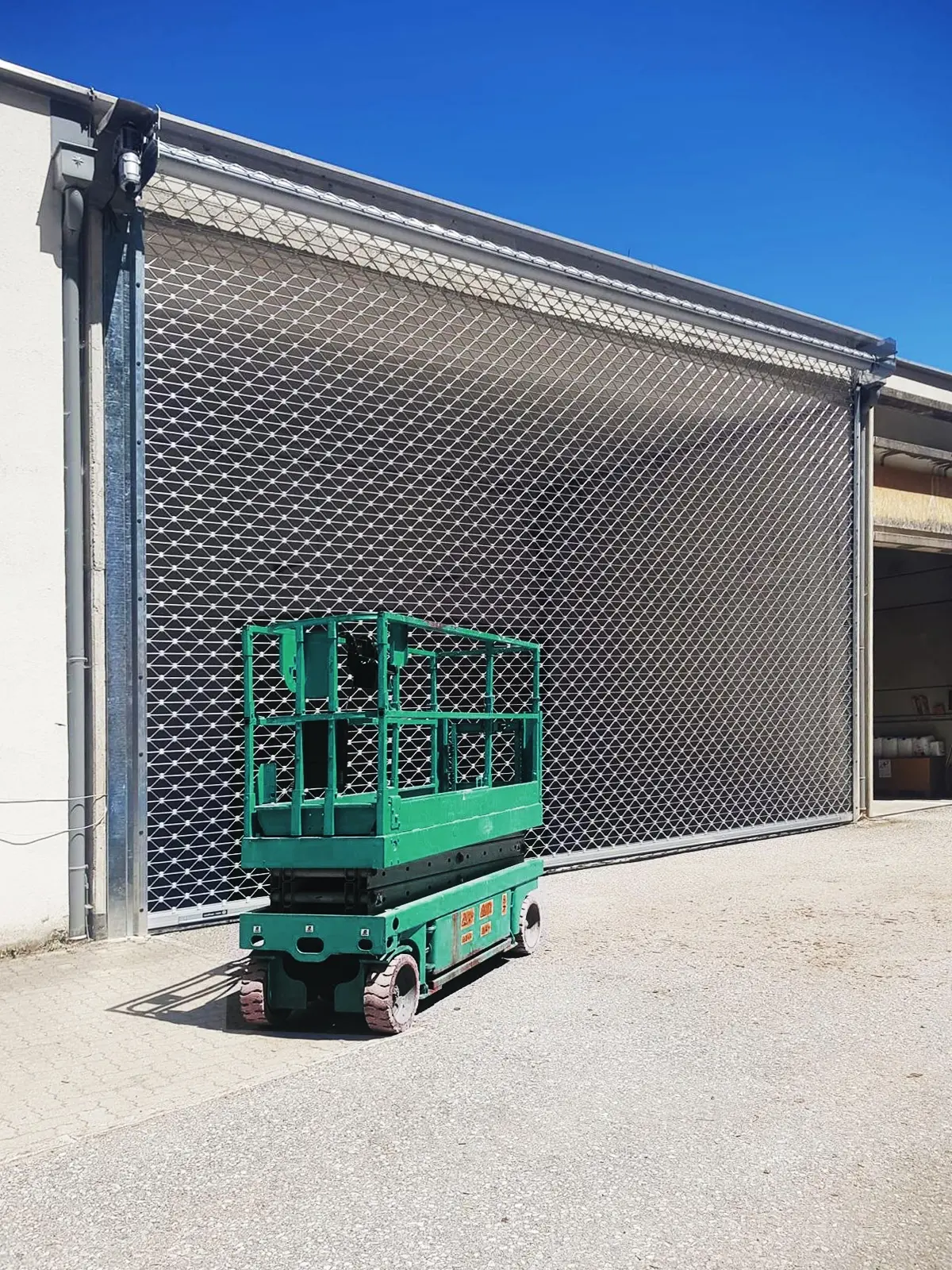 Sicherheit trifft auf Verantwortung – Für die Bioenergie St. Gilgen wurde ein Rollgitter des Typs RGA ProTect mit einer Größe von 8940 x 5500 mm installiert, das als zuverlässige Absturzsicherung für das Hackschnitzellager dient.