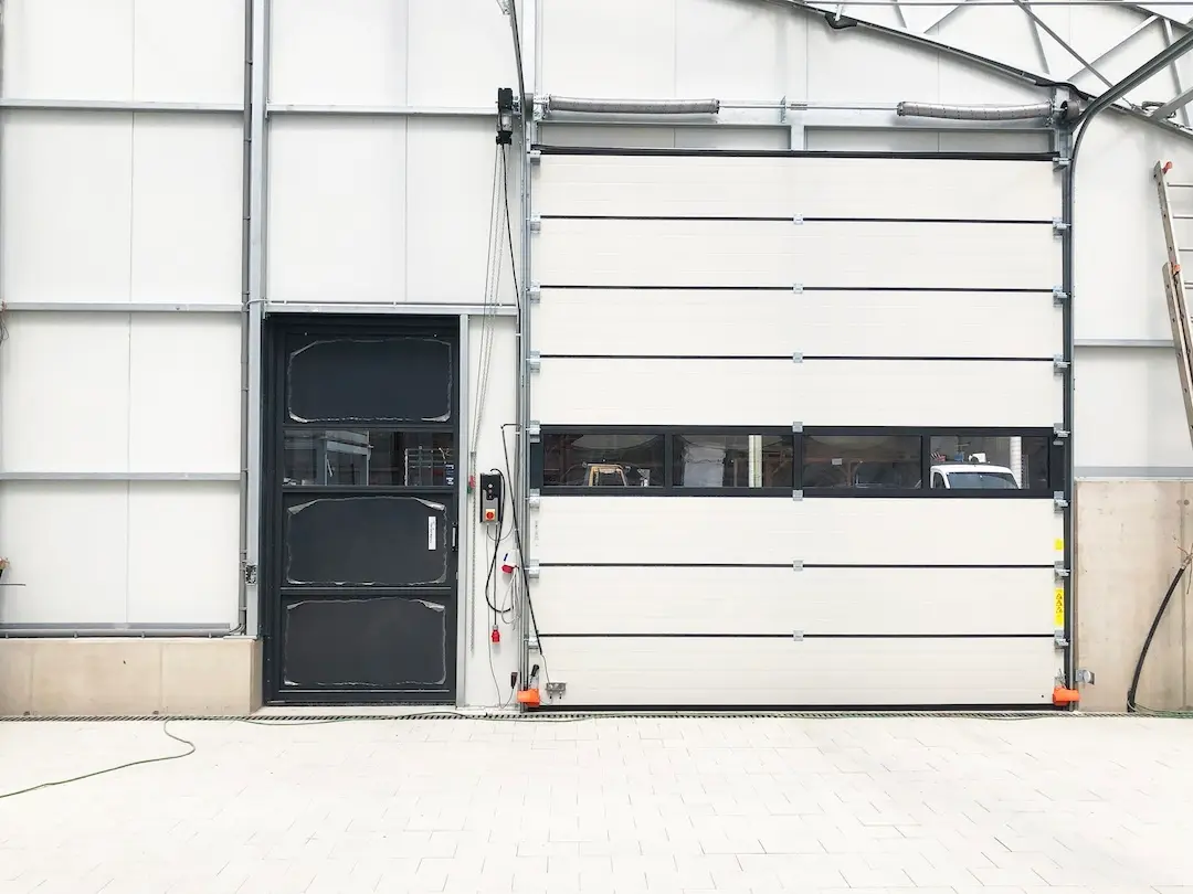 Für die neue „Grünraumoase“ haben wir drei Tore eingebaut. Im Glashaus wurde ein Industrietor mit einer Sichtsektion montiert, während im Eisenlager ein Garagentor mit manuellem Antrieb eingebaut wurde und im Gestaltungslager ein Industrietor mit drei Sichtsektionen und integrierter Schlupftür.