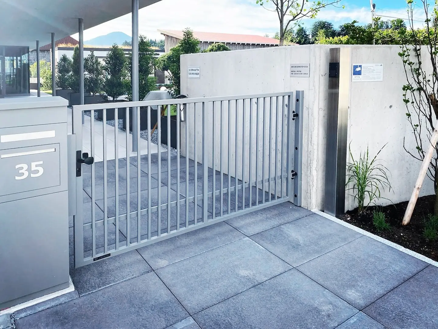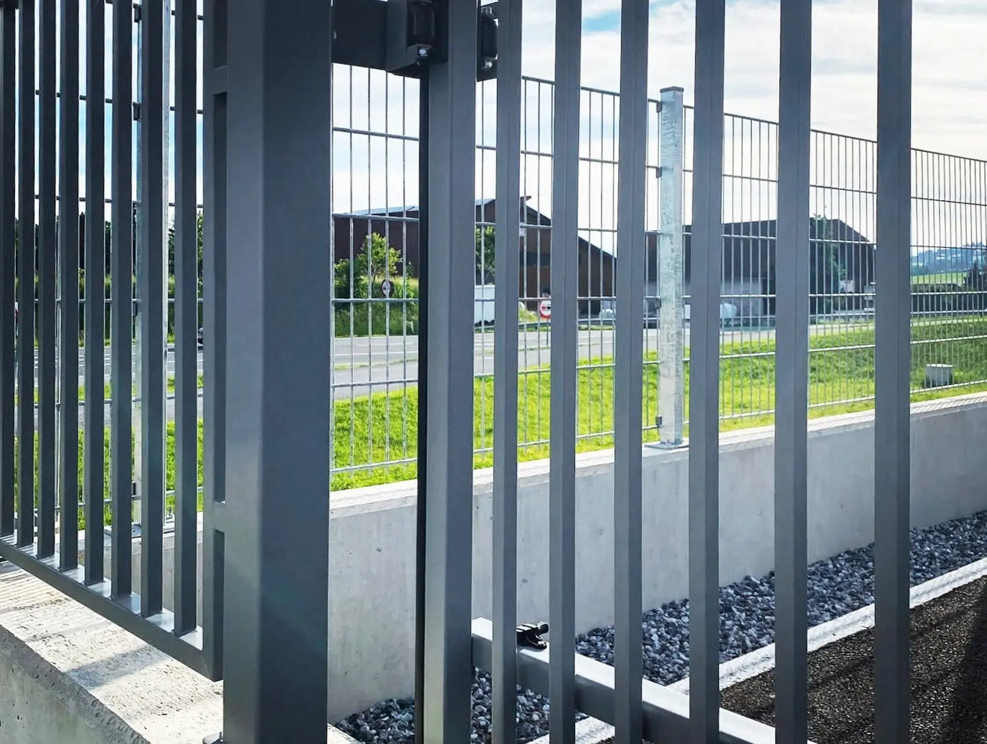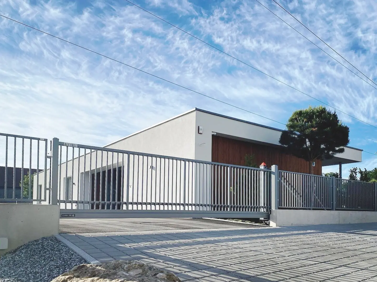 Deshalb haben wir auf ganzheitlich durchdachte Technik & Ästhetik von Anfang an gesetzt. Großer Planungsaufwand – große Ergebnisse: Das automatisierte Schiebetor sorgt für reibungslosen, sicheren Zugang – mit intelligenter Steuerung, zuverlässiger Antriebstechnik und wartungsarmem Betrieb. Es fügt sich nahtlos in das architektonische Konzept ein und unterstreicht unseren Anspruch an Innovation, Effizienz und Design – bis ins letzte Detail.