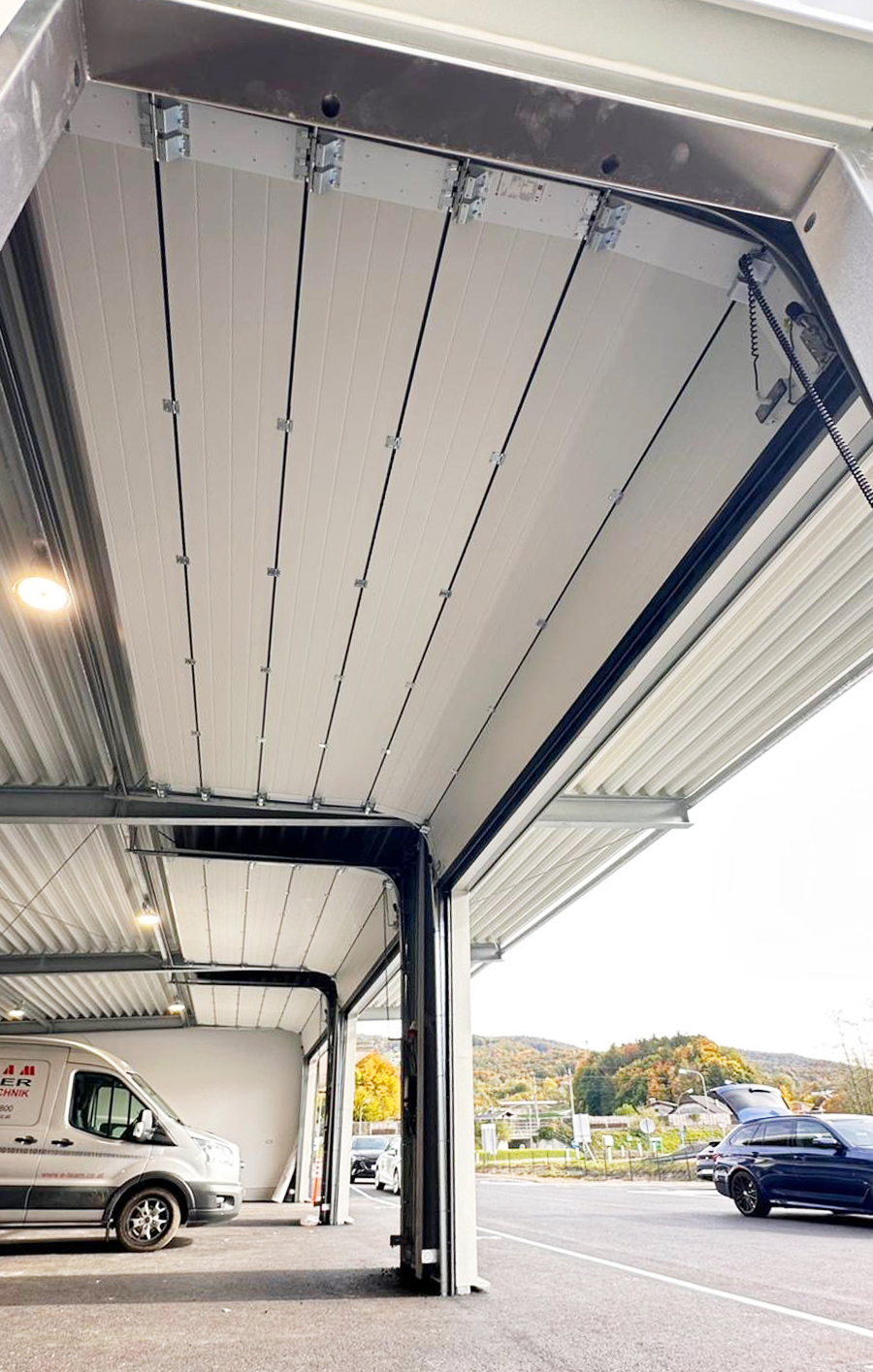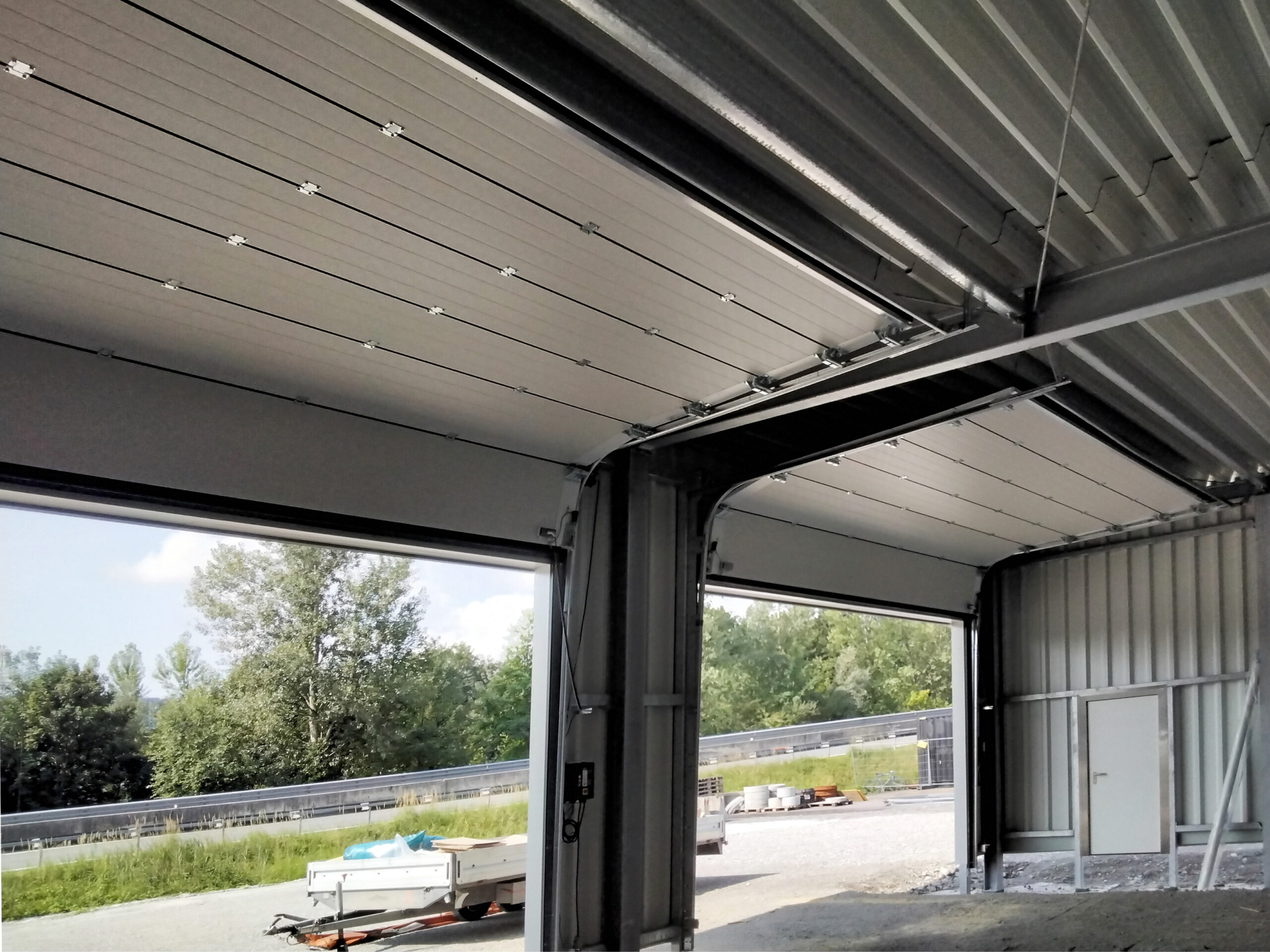 Für die Fahrschule Zebra in Puch bei Hallein durften wir im Auftrag der PORR Salzburg drei  Industriesektionaltore des Modells „Proline“ konfektionieren und montieren. Die 5000 x 3200 mm Tore sind aus robusten Stahl-Sandwich-Paneelen gebaut, die durch ihre hervorragende Wärme- und Schalldämmung überzeugen. Diese Bauweise bietet nicht nur eine hohe Energieeffizienz und Stabilität, sondern sorgt auch für eine langlebige und wartungsarme Lösung.