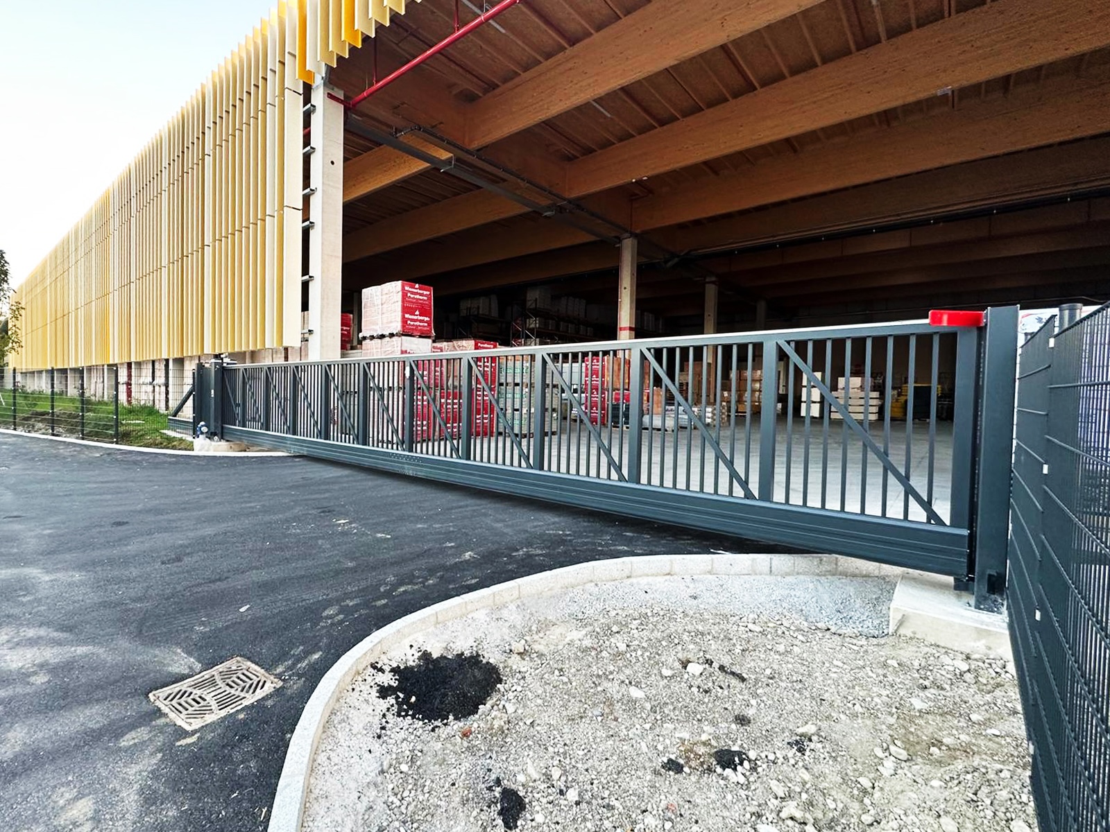 / Einfahrtstor & Zaun Zentrallager Lagerhaus